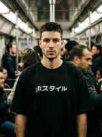 The word in Japanese katakana, then broken apart with the same glitch logic that runs through the rest of the collection. Type as subject matter. The meaning is in the distortion as much as the characters themselves.